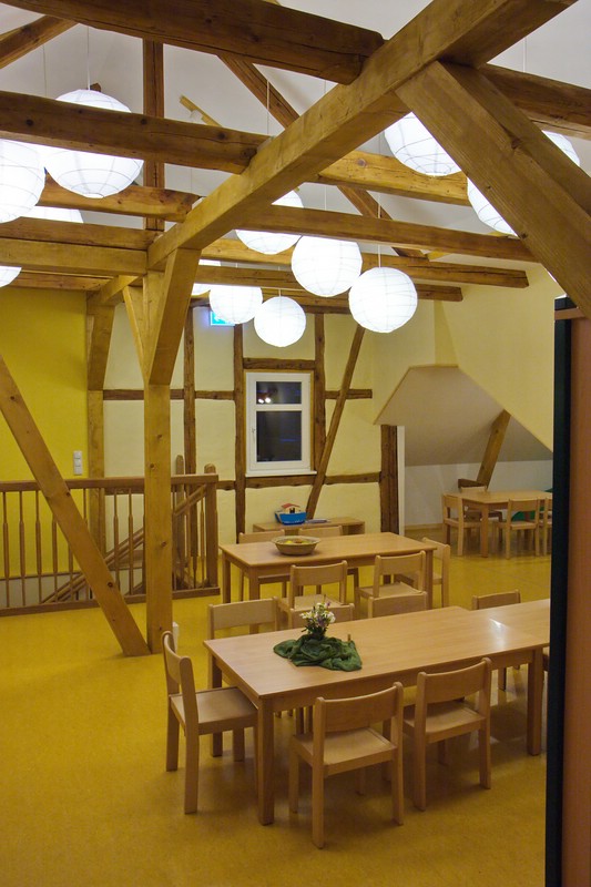 Ich halte es für eine ganz wichtige Aufgabe Werte zu vermitteln, bereits in Kindern einen Samen zu legen, der vielleicht irgendwann einmal in ihrem Leben eine große Bedeutung bekommen kann. Wir bekamen als Gemeinde von der Stadt ein altes Haus angeboten, dieses haben wir von Grund auf saniert und als Verein www.burgspatzen.de eine Kindertagesstätte gegründet. Mittlerweile betreuen wir 38 Kinder im Alter von 1-6 Jahren.