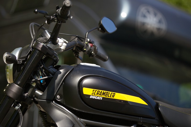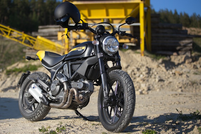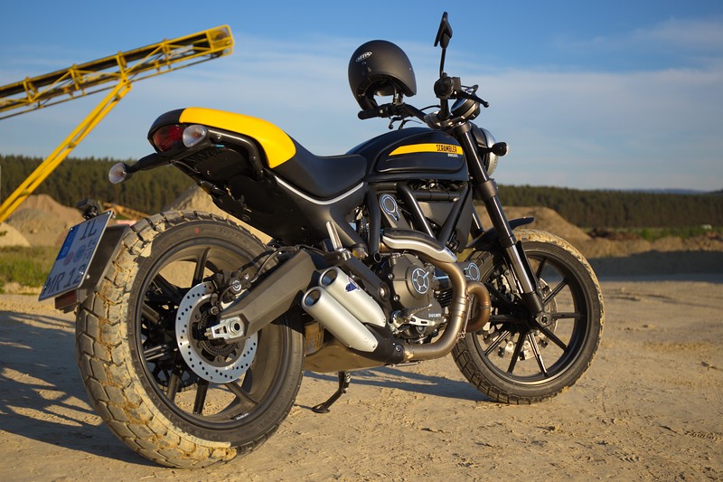 Ducati arbeitet in der neuen Scrambler mit dem altbewährten 803 cm Desmo-Twin Motor, welcher ursprünglich aus der Monster 796 stammt. Mit einer Leistung von 55 kW (75 PS) und einer angepassten- sowie abgestimmten Leistungskurve verrichtet die Scrambler ein Drehmoment von 68 Nm über das gesamte Drehzahlband. Somit ist eine gleichmäßige Leistung erbracht, die sowohl Einsteiger, als auch „alteingesessene“ Motorradfahrer nicht über- bzw. unterfordert. Durch die niedrige Sitzbank (790 mm), einem niedrigen Gewicht von nur 170kg trocken und der durch den breiten Lenker entspannten Sitzposition bietet die Scrambler einen ausgezeichneten Fahrspaß und perfektes Handling.