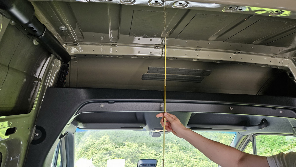 An der Decke sind Leisten parallel neben den Holmen angeklebt (diese nur mit 6 mm gedämmt), um möglichst hohe Kopffreiheit zu erreichen, der Sprinter ist innen nicht so sehr hoch.