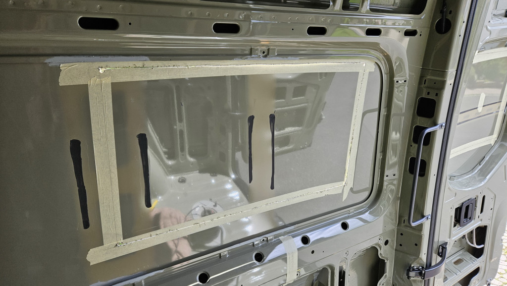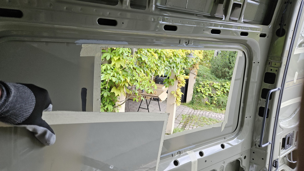 Es ist brutal in einem neuen Auto die Stichsäge anzusetzen… Wichtig ist alle Bleche gut zu entgraten und mit Rostschutz zu versiegeln. Die Außenbleche vom Sprinter sind übrigens verzinkt.