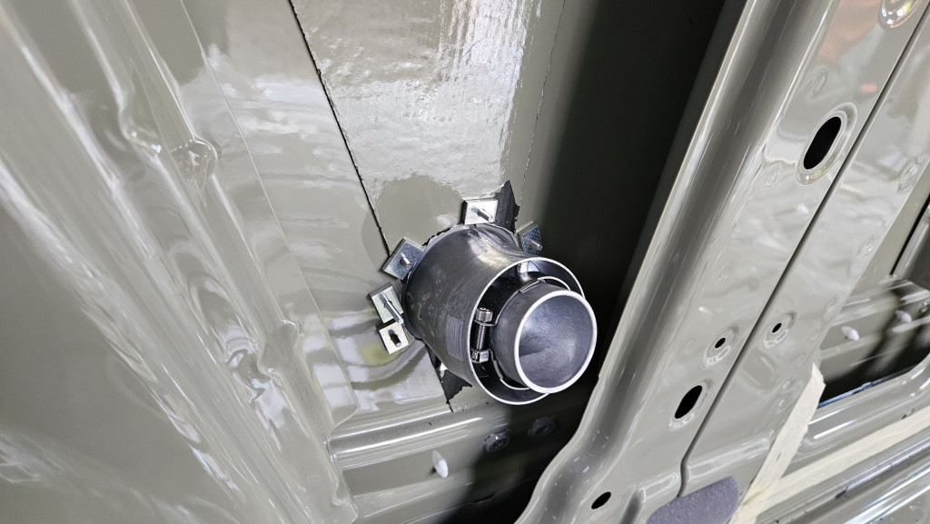 Die Dieselheizung braucht auch Zu- und Abluft. Ebenso der Frischwassereinlass. Das sind dann weitere Öffnungen an der Seite. Wichtig ist eine gute Abdichtung.