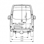 - In der Heckansicht kann man gut erkennen, dass der Sprinter oben deutlich enger wird. Das ist für die Planung der Oberschränke wichtig.
