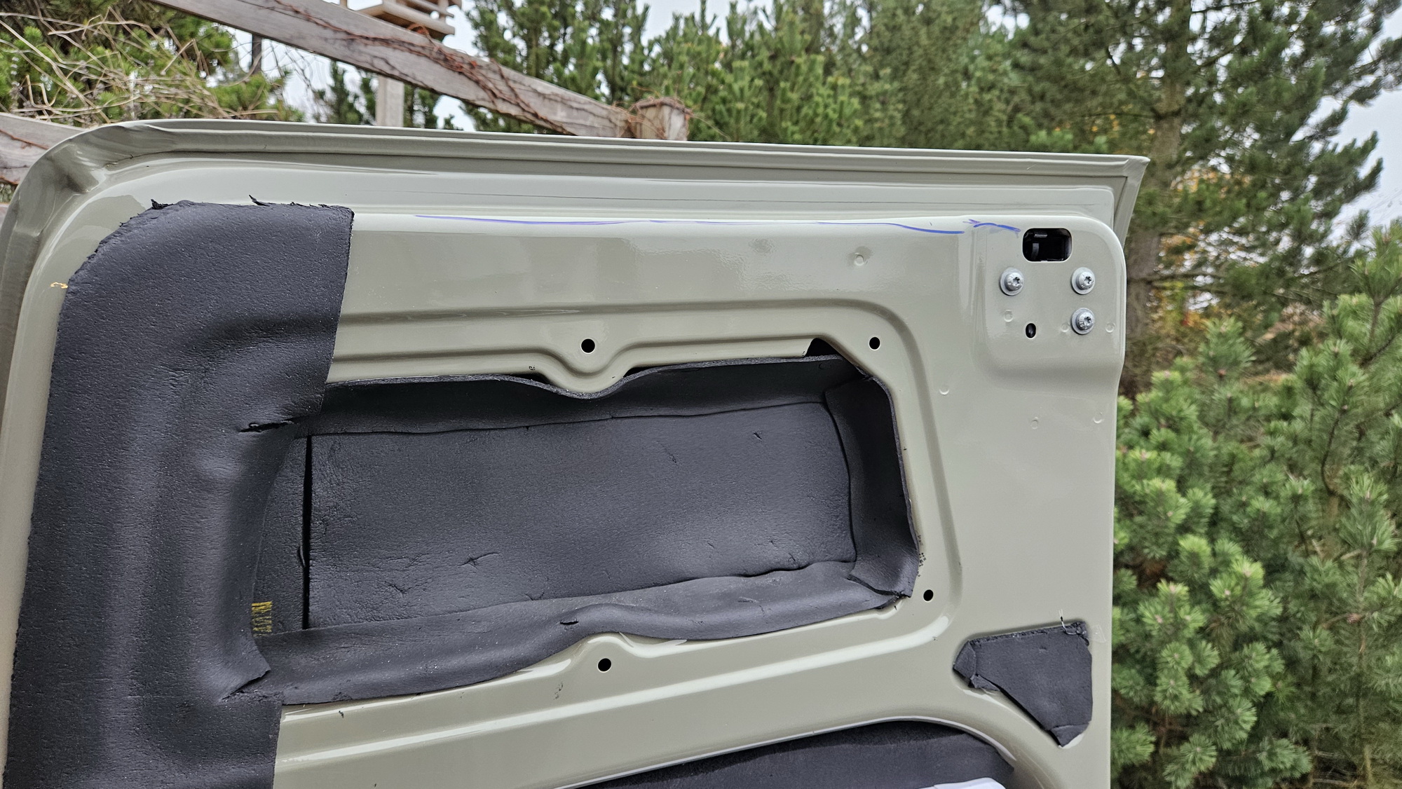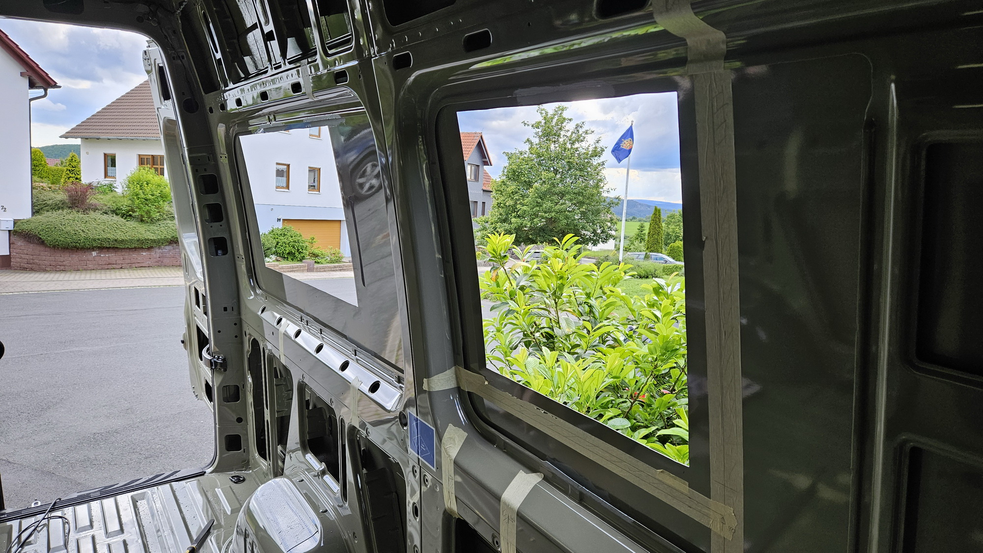 Es ist brutal in einem neuen Auto die Stichsäge anzusetzen… Wichtig ist alle Bleche gut zu entgraten und mit Rostschutz zu versiegeln. Die Außenbleche vom Sprinter sind übrigens verzinkt.