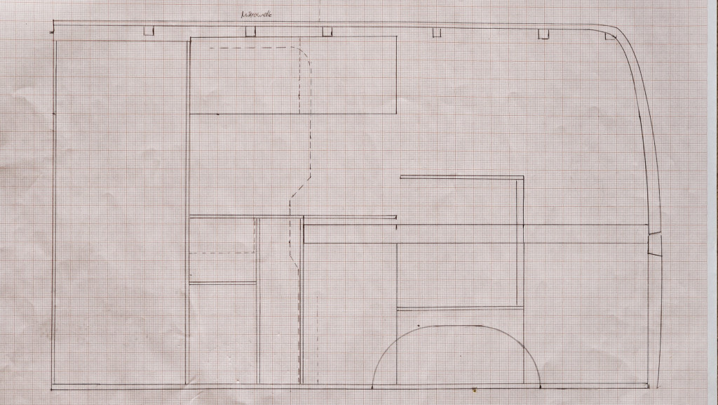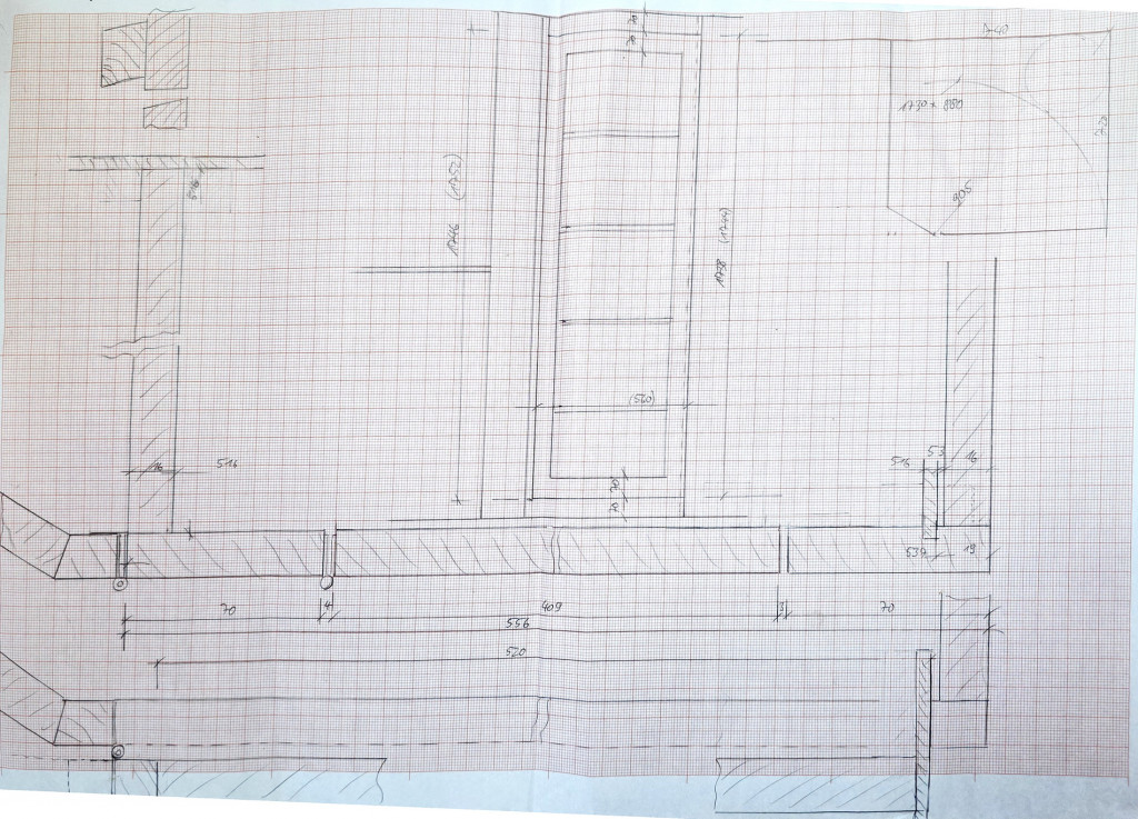 Es sind also nur einfache Handskizzen, gearbeitet wird live und vor Ort alle Zuschnitte angepasst. Das Prinzip kann man aber erkennen: