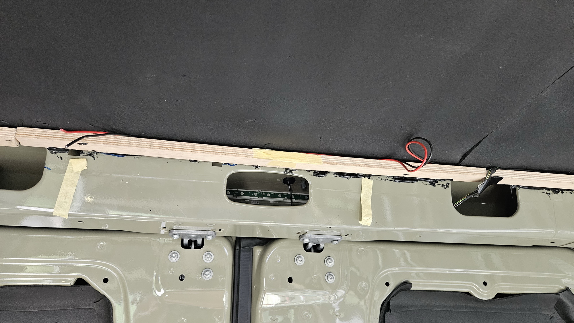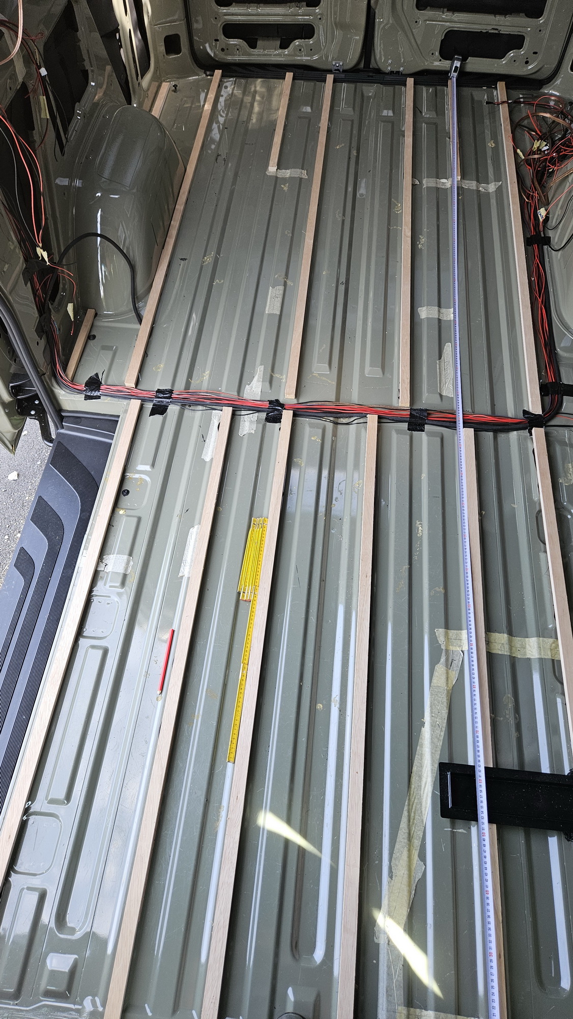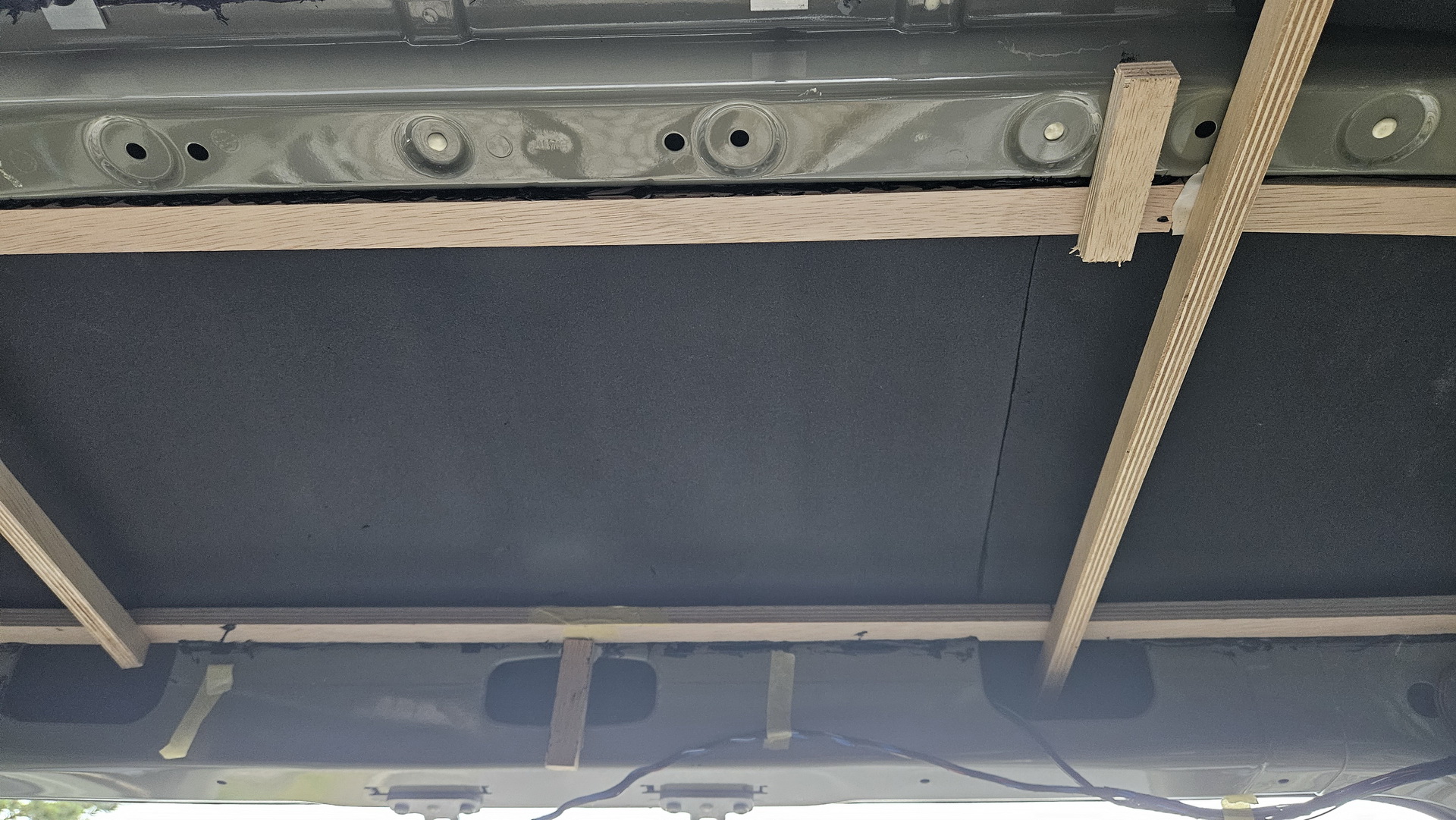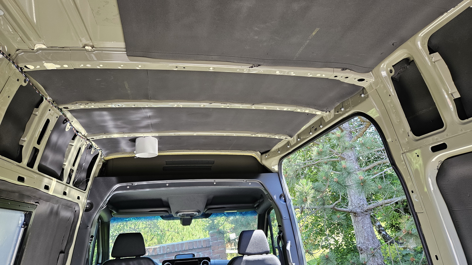 An der Decke sind Leisten parallel neben den Holmen angeklebt (diese nur mit 6 mm gedämmt), um möglichst hohe Kopffreiheit zu erreichen, der Sprinter ist innen nicht so sehr hoch.