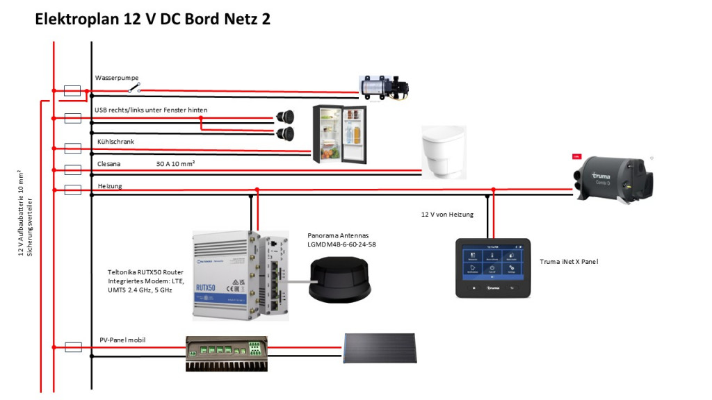 - Weitere Verbraucher und der Router (WLAN) mit Dachantenne.