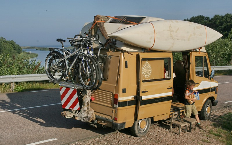 Alles gepackt auf 4,75 m Länge, 4 Fahrräder 1 Kajak, 4 Leute und Verpflegung für 3 Wochen in Schweden … gibt es das heute noch?