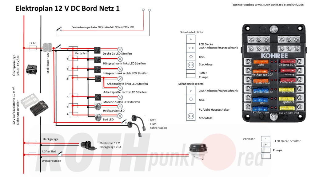 Die Elektrik ist für manche ein Horror. Zugegeben, das ist nicht ganz einfach, man muss sich hineindenken und viel recherchieren. Ganz wichtig ist eine genaue Dokumentation und ein Schaltplan, sonst blickt man später nicht mehr durch.
